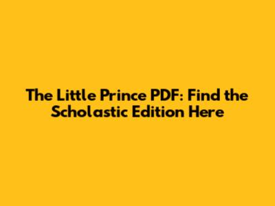 The Little Prince PDF: Find The Scholastic Edition Here
