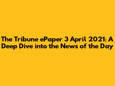 Hey guys! Ever find yourself scrambling to keep up with the daily news? Well, let's take a little trip back in time and explore The Tribune ePaper from April 3, 2021. This wasn't just any ordinary day; it was a snapshot of the world, filled with stories that mattered, events that shaped our lives, and perspectives that broadened our understanding. In this article, we're going to dive deep into the key highlights of that day's edition, giving you a comprehensive overview of the news that was making headlines. We'll break down the major stories, analyze their impact, and reflect on their relevance in today's context. So, grab a cup of coffee, settle in, and let's get started!