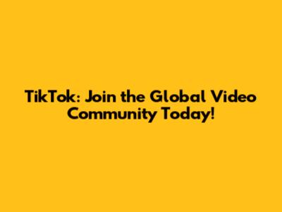 TikTok: Join The Global Video Community Today!