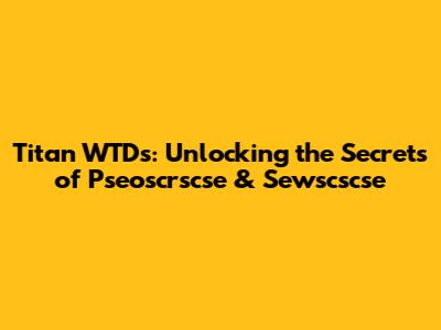 Titan WTDs: Unlocking The Secrets Of Pseoscrscse & Sewscscse