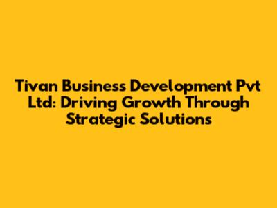 Tivan Business Development: Growth Strategies & Solutions