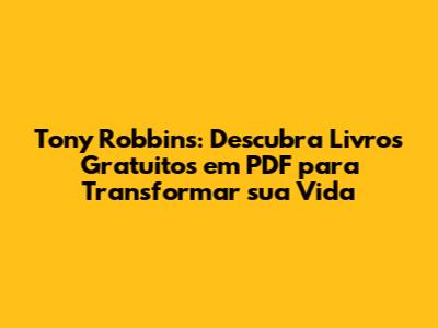 Olá, pessoal! Se você está aqui, provavelmente está buscando uma maneira de turbinar sua vida e alcançar novos patamares de sucesso, certo? E adivinhem? Vocês chegaram ao lugar certo! Hoje, vamos mergulhar no universo de Tony Robbins, um dos maiores gurus de desenvolvimento pessoal do mundo, e descobrir como acessar seus livros em PDF gratuitamente. Sim, você ouviu direito! Vamos explorar como você pode ter acesso a esse conteúdo incrível sem gastar nada. Preparem-se para uma jornada de autodescoberta e crescimento!