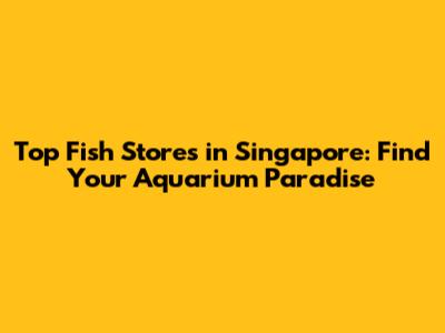 Top Fish Stores In Singapore: Find Your Aquarium Paradise