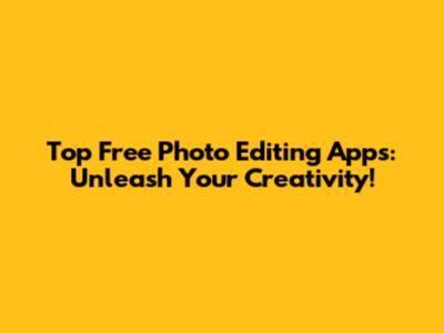 Top Free Photo Editing Apps: Unleash Your Creativity!
