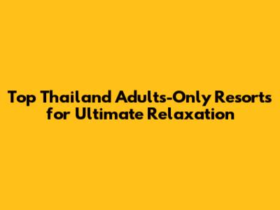 Top Thailand Adults-Only Resorts For Ultimate Relaxation