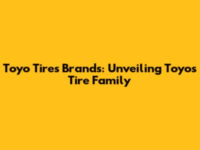 Toyo Tires Brands: Unveiling Toyo's Tire Family