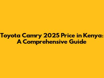 Hey everyone! Are you guys excited about the Toyota Camry 2025? I know I am! This article is your one-stop shop for everything related to the Toyota Camry 2025 price in Kenya. We'll dive deep into what you can expect, including the estimated price, key features, and what makes this car so popular. Let's get started, shall we?