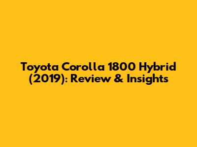 Is the Toyota Corolla 1800 Hybrid 2019 Right for You?