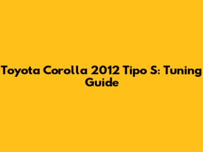 Hey guys! Let's dive into the awesome world of tuning the Toyota Corolla 2012 Tipo S. This car is a fantastic base for modifications, whether you're aiming for better performance, enhanced looks, or a combination of both. In this guide, we'll explore various tuning options to help you make your Tipo S stand out. From engine tweaks to aesthetic upgrades, we've got you covered. So, buckle up and get ready to transform your Corolla into a personalized ride!