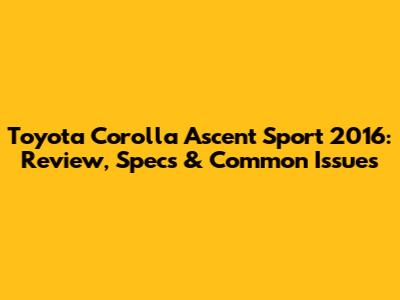 Toyota Corolla Ascent Sport 2016: Review, Specs & Common Issues