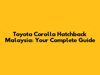 Toyota Corolla Hatchback Malaysia: Your Complete Guide