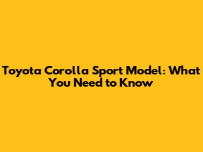 Toyota Corolla Sport Model: What You Need To Know
