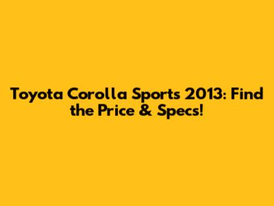Toyota Corolla Sports 2013: Find The Price & Specs!
