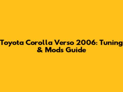 Toyota Corolla Verso 2006: Tuning & Mods Guide