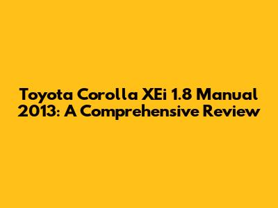 Hey guys! Today, we're diving deep into a detailed review of the Toyota Corolla XEi 1.8 Manual 2013. This car has been a favorite for many due to its reliability, fuel efficiency, and overall practicality. If you're considering buying a used car or are just curious about this model, you've come to the right place. We'll cover everything from its performance and handling to its interior, features, and potential issues. So, buckle up and let's get started!
