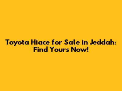Toyota Hiace For Sale In Jeddah: Find Yours Now!