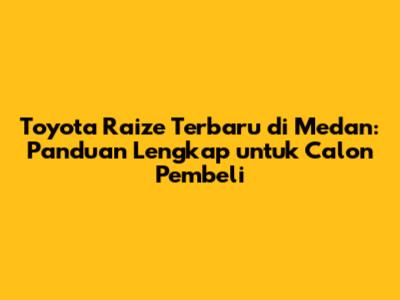 Toyota Raize telah menjadi primadona di pasar otomotif, khususnya di kota-kota besar seperti Medan. Dengan desain yang stylish, fitur yang canggih, dan harga yang kompetitif, Raize menawarkan kombinasi yang menarik bagi banyak kalangan. Artikel ini akan membahas secara mendalam mengenai harga Toyota Raize baru di Medan, serta informasi penting lainnya yang perlu Anda ketahui sebelum memutuskan untuk meminang mobil impian ini. Jadi, buat kalian yang lagi kepengen banget punya Raize, simak terus ya!
