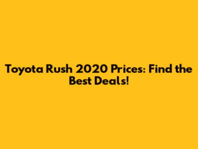 Toyota Rush 2020 Prices: Find The Best Deals!