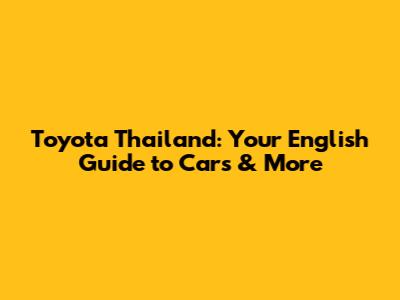 Toyota Thailand: Your English Guide To Cars & More