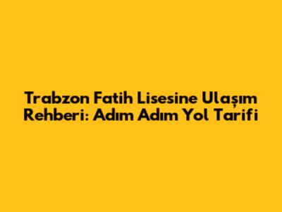 Trabzon Fatih Lisesi'ne Ulaşım Rehberi: Adım Adım Yol Tarifi