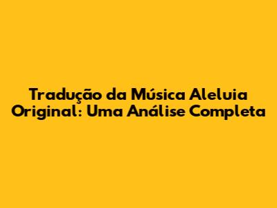 Tradução Da Música Aleluia Original: Uma Análise Completa