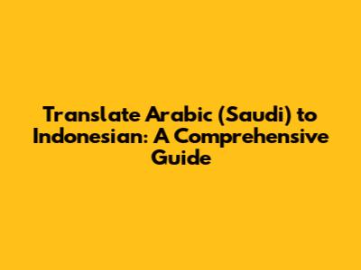 Translate Arabic (Saudi) To Indonesian: A Comprehensive Guide