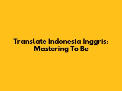 Translate Indonesia To English: Mastering 'To Be'