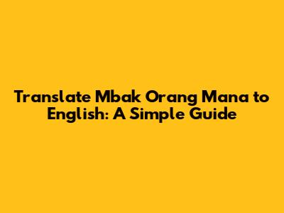 Translate 'Mbak Orang Mana' To English: A Simple Guide