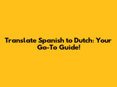 Translate Spanish To Dutch: Your Go-To Guide!