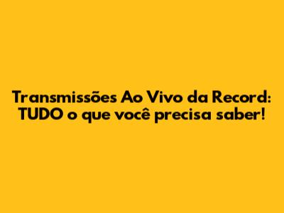 Transmissões Ao Vivo Da Record: TUDO O Que Você Precisa Saber!