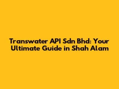 Transwater API Sdn Bhd: Your Shah Alam Guide