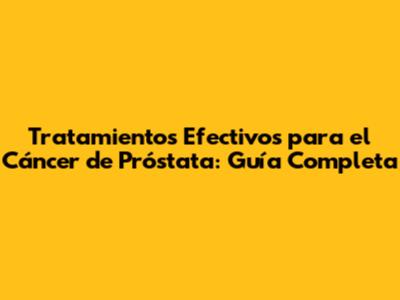 Tratamientos Efectivos Para El Cáncer De Próstata