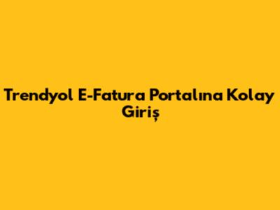 Trendyol E-Fatura Portalına Kolay Giriş