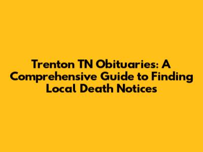 Hey there, folks! If you're here, chances are you're looking for information about Trenton, TN obituaries. Maybe you're searching for a loved one, researching family history, or just keeping up with the community news. Whatever the reason, you've come to the right place! This guide will walk you through everything you need to know about finding local death notices in Trenton, Tennessee. We'll cover where to look, what to expect, and some tips to make your search easier. So, grab a coffee, settle in, and let's dive into the world of Trenton, TN obituaries!