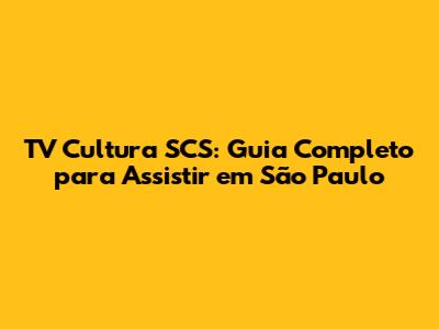 TV Cultura SCS: Guia Completo Para Assistir Em São Paulo