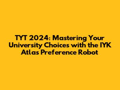 Hey everyone! Planning your future is a big deal, and if you're gearing up for the TYT (Temel Yeterlilik Testi) in 2024, you're probably already knee-deep in studying, practice tests, and maybe a little bit of stress. Well, good news! The IYK Atlas Preference Robot is here to make the university selection process a whole lot smoother. Think of it as your personal guide, helping you navigate the sometimes-confusing world of university programs, admission requirements, and, ultimately, your future career path. This guide will walk you through what the IYK Atlas Preference Robot is, how it works, and how you can use it to ace your university choices for the TYT 2024.