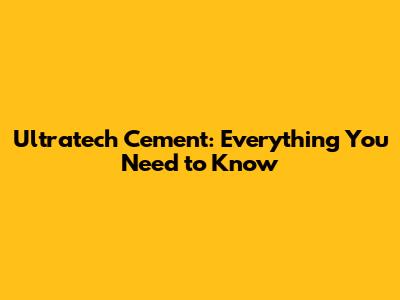 Ultratech Cement: Everything You Need To Know