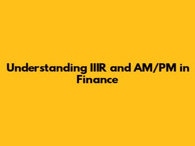 Understanding IIIR And AM/PM In Finance