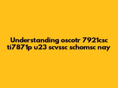 Understanding Oscotr 7921csc Ti7871p U23 And More