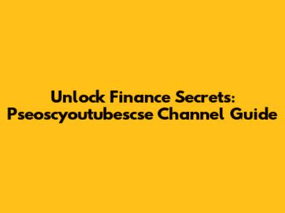 Unlock Finance Secrets: Pseoscyoutubescse Channel Guide