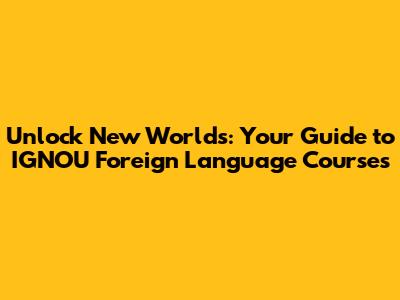 Unlock New Worlds: Your Guide To IGNOU Foreign Language Courses