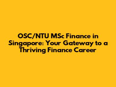 Unlock Your Finance Career: OSC/NTU MSc In Singapore