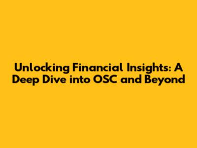 Decoding OSC: The Foundation of Financial Analysis