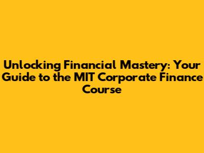 Unlocking Financial Mastery: Your Guide To The MIT Corporate Finance Course