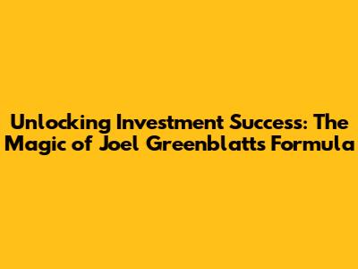 Unlocking Investment Success: The Magic Of Joel Greenblatt's Formula
