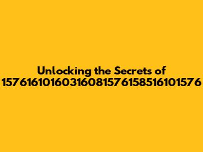 Unlocking The Secrets Of 15761610160316081576158516101576