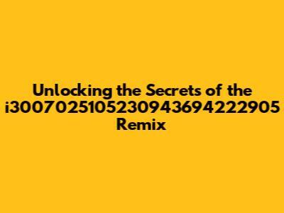 Unlocking The Secrets Of The I3007025105230943694222905 Remix