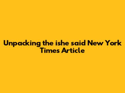 Unpacking The 'ishe Said' New York Times Article