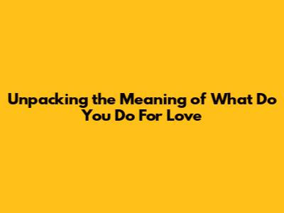Unpacking 'What Do You Do For Love' Meaning
