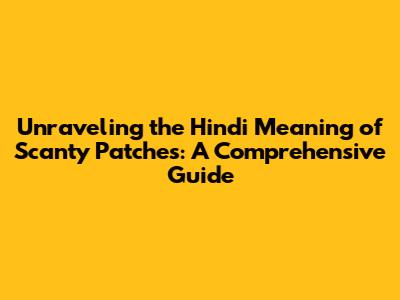Unraveling The Hindi Meaning Of Scanty Patches: A Comprehensive Guide